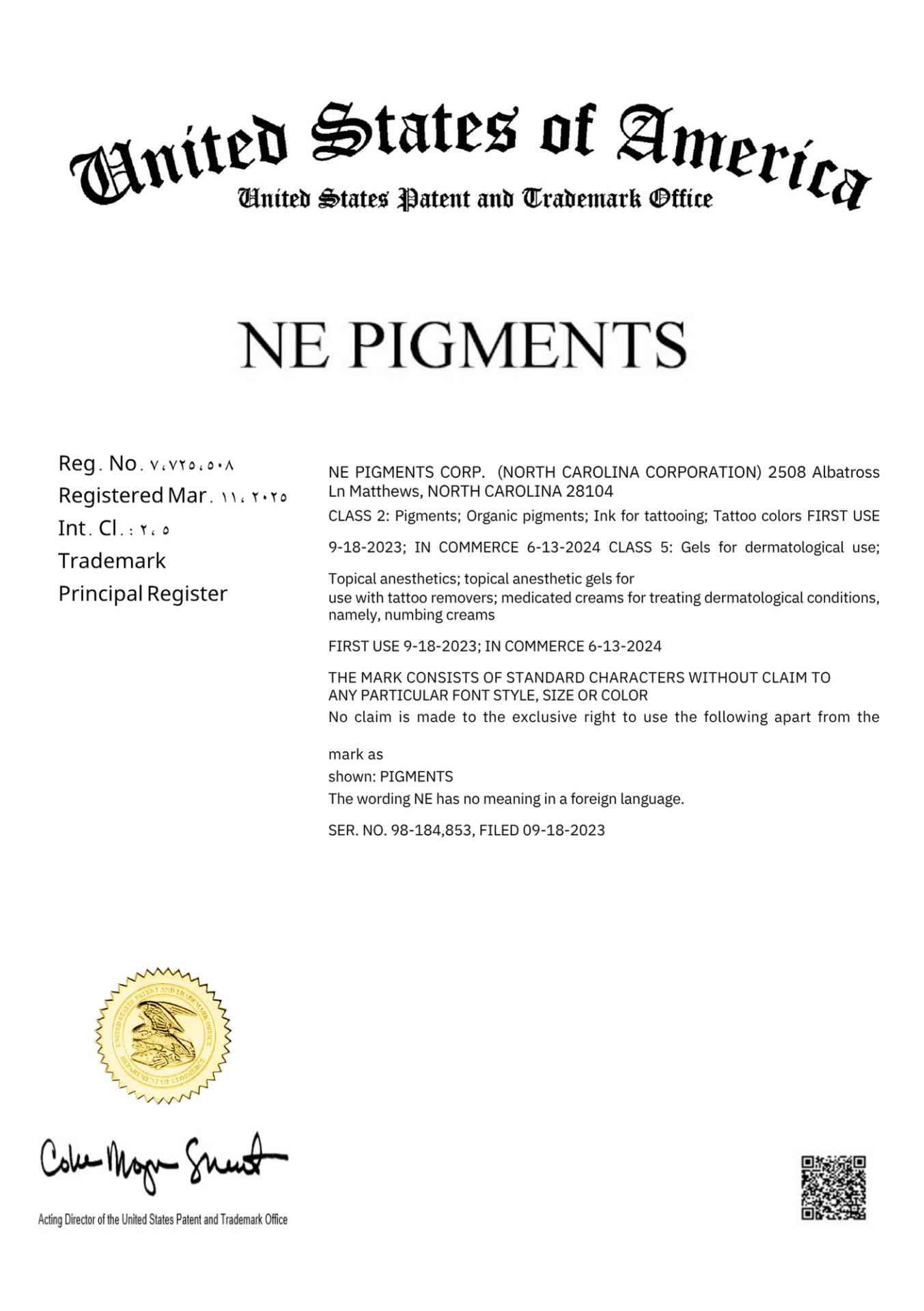 Với độ bão hòa màu sau bong lên đến 90%, bảng màu phong phú và khả năng giữ màu ổn định, NE Pigments trở thành lựa chọn yêu thích của nhiều chuyên gia phun xăm trên toàn thế giới.
