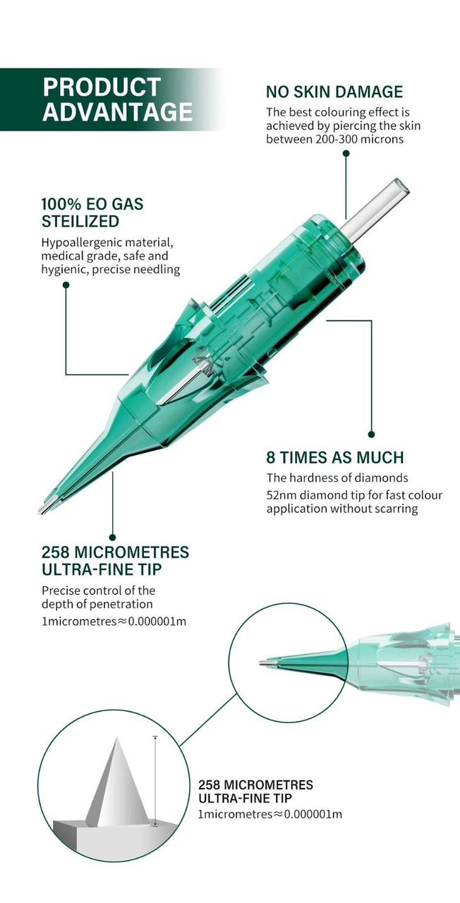 Được chế tác với mũi kim kim cương siêu mảnh – laser 52nm, Kim Hyper #1 mang lại đường đi chuẩn xác, êm ái, không xé da.