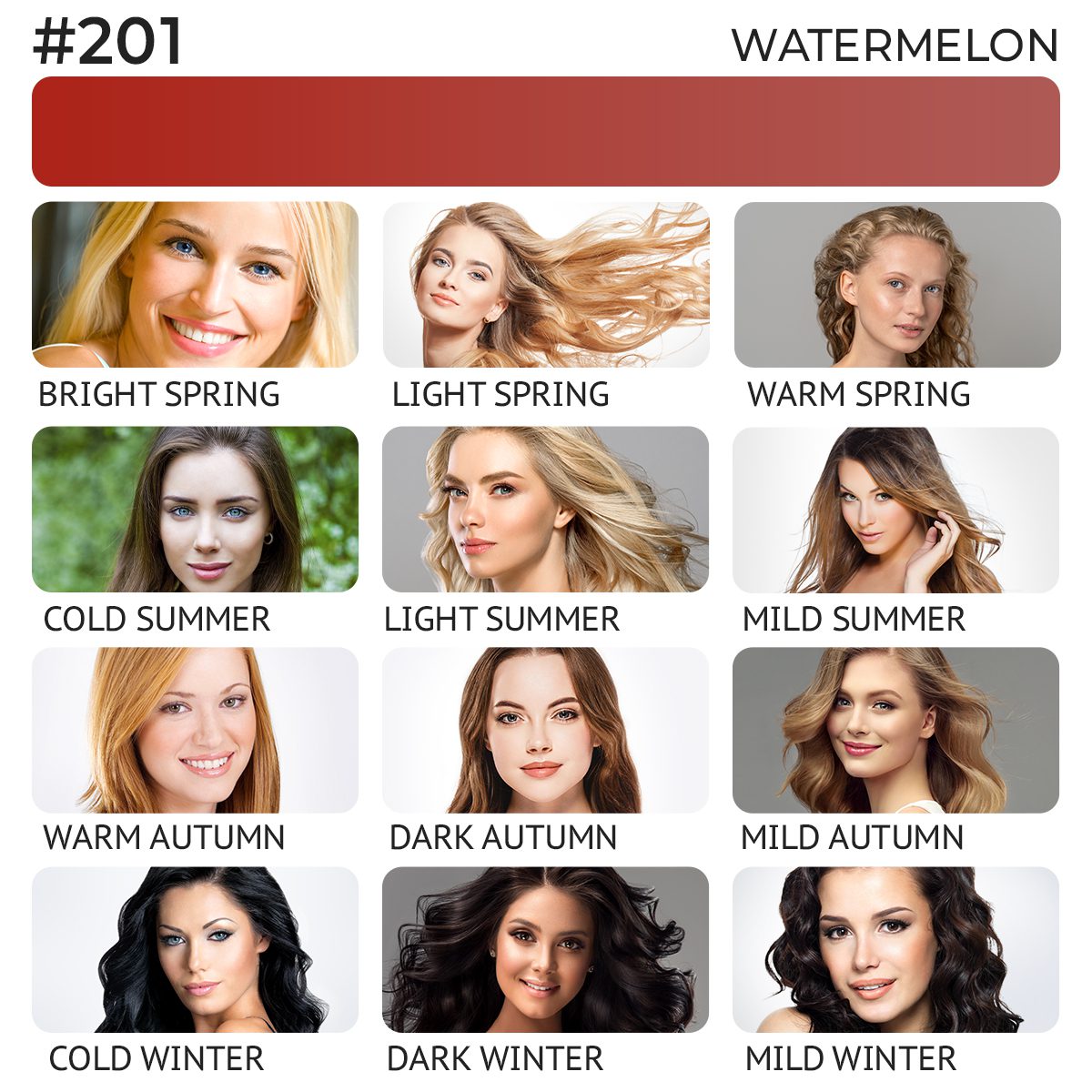 Suits pure color types – autumn, spring, and summer, but only if the lips have little pigment and a nude effect is needed.